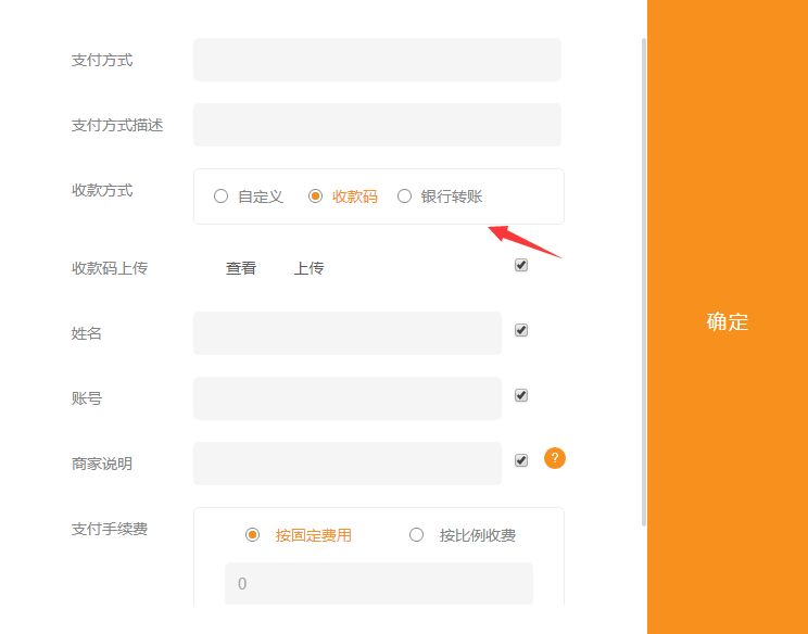 自建支付方式扫码、银行转账
